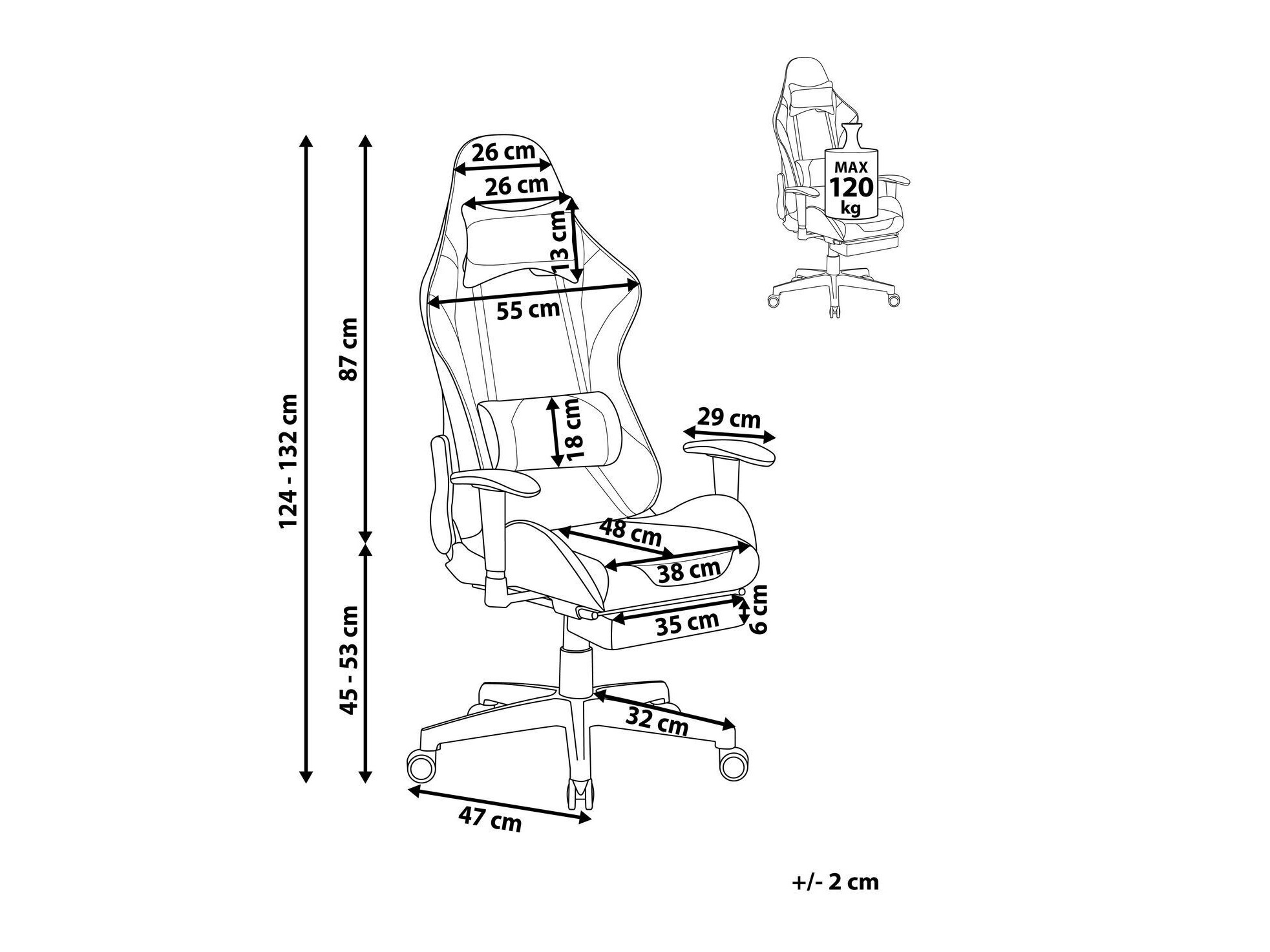 Βάθος μαξιλαριού καθίσματος: