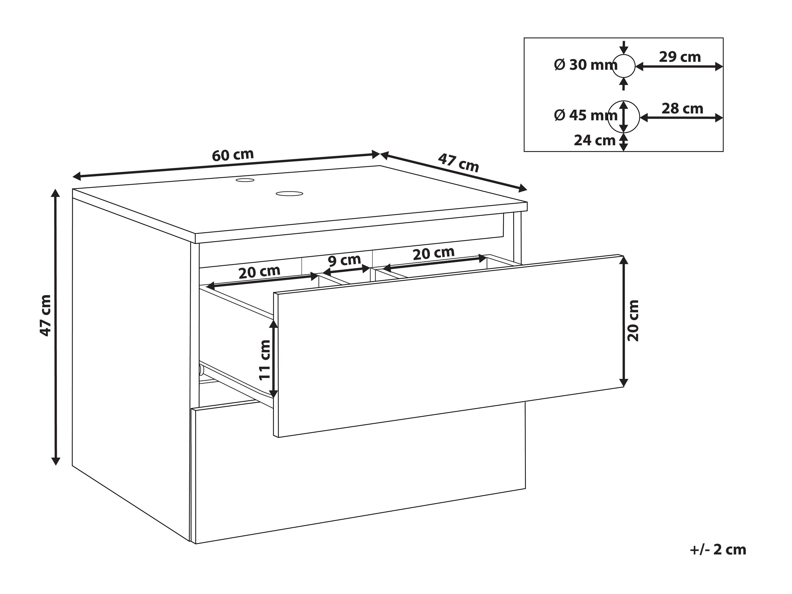 Μέγιστη αντοχή βάρους συρταριού: