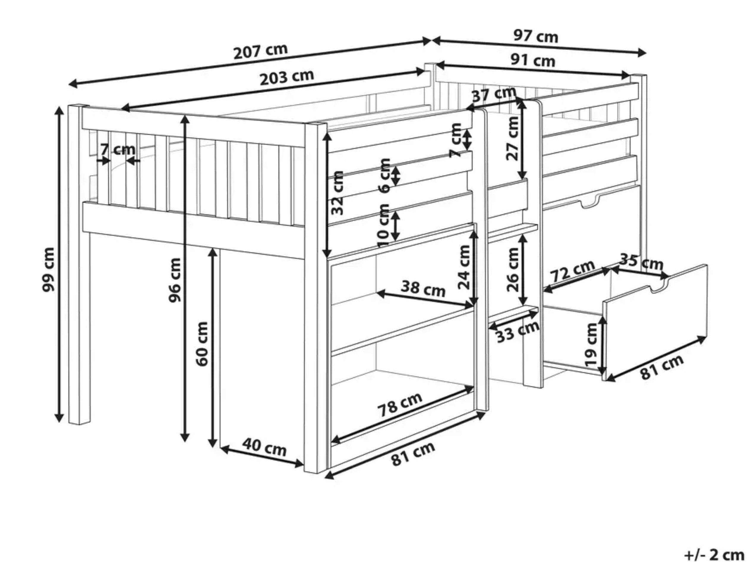 Διαστάσεις συρταριού κρεβατιού: