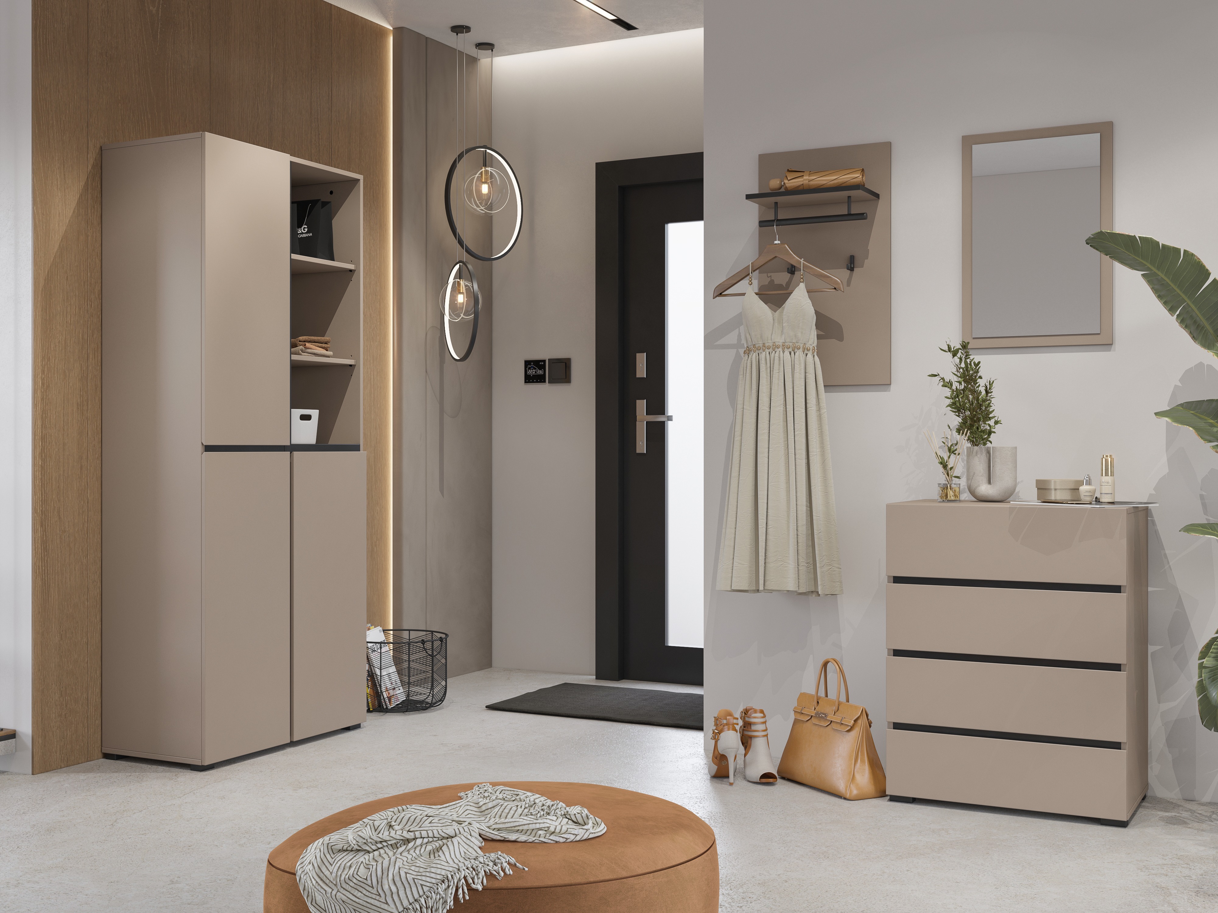 Οι καθαρές γραμμές, η τάξη και η αρμονία είναι χαρακτηριστικά που χαρακτηρίζουν όλο και περισσότερο το σύγχρονο σπίτι. Αυτή η συλλογή επίπλων αντανακλά ακριβώς αυτό. Με τις μοντέρνες γραμμές και τις διακριτικές, ενσωματωμένες λαβές, δημιουργεί μια καθαρή, μίνιμαλ ατμόσφαιρα, όπου η απλότητα κυριαρχεί. Η ουδέτερη χρωματική παλέτα προσδίδει μια αίσθηση φυσικού φωτός, ηρεμίας και διακριτικής κομψότητας στον χώρο. Η συλλογή ταιριάζει απόλυτα σε διάφορους χώρους του σπιτιού, από το σαλόνι και την κρεβατοκάμαρα μέχρι τον διάδρομο. Χάρη στο μοντέρνο σχεδιασμό της, συνδυάζεται εύκολα τόσο με απαλά, σε ουδέτερα χρώματα χώρους όσο και με πιο τολμηρά, έντονα στυλ.