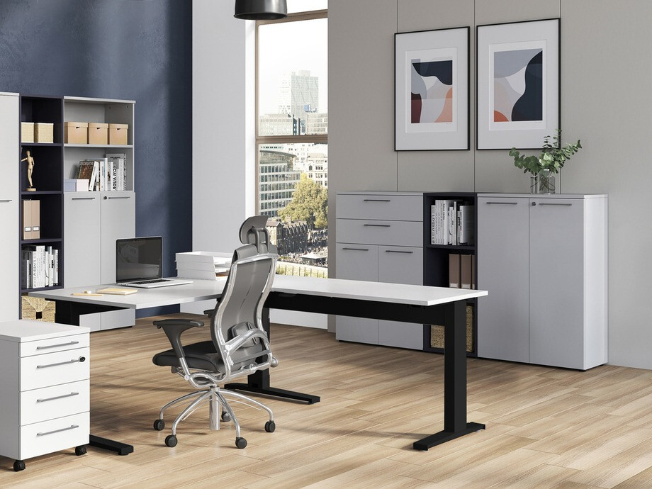 Η συλλογή επίπλων μοντέρνου σχεδιασμού θα ενθουσιάσει κάθε λάτρη του μίνιμαλ στυλ. Σε αυτή τη συλλογή επίπλων, μπορείτε να επιλέξετε ανάμεσα σε διάφορες χρωματικές επιλογές. Τα ανοιχτά γκρι έπιπλα θα ενθουσιάσουν όσους τους αρέσουν τα φωτεινά χρώματα στη διακόσμηση ενός χώρου, τα έπιπλα σε χρώμα «Grandson» δρυς που συμπληρώνονται με χρώμα γραφίτη θα ενθουσιάσουν τους λάτρεις της φυσικότητας. Αυτή η συλλογή επίπλων συμπληρώνεται από μεταλλικές λαβές που προσδίδουν ανάλαφρη αίσθηση στο χώρο. Τα έπιπλα είναι εύκολο να διατηρηθούν σε καλή κατάσταση, καθώς είναι καλυμμένα από διάφανο υλικό που τα προστατεύει από μικρές γρατζουνιές και επιτρέπει τον εύκολο καθαρισμό των συσσωρευμένων ρύπων. Αυτή η συλλογή διαθέτει επίσης πλαστικά προστατευμένες γωνίες, οι οποίες είναι κατασκευασμένες από υλικά ανθεκτικά στα χτυπήματα. Τα συρτάρια και οι πόρτες διαθέτουν μηχανισμό αθόρυβου κλεισίματος, ο οποίος είναι ιδιαίτερος στο ότι αποτρέπει το απότομο κλείσιμο. Η λειτουργικότητα και η άνεση είναι βασικά χαρακτηριστικά αυτής της συλλογής γερμανικής κατασκευής. Τα ντουλάπια θα σας επιτρέψουν να επιλέξετε τον πιο βολικό τρόπο αποθήκευσης των πραγμάτων, ένα συρτάρι με δυνατότητα κλειδώματος θα σας εξασφαλίσει την προστασία των προσωπικών σας αντικειμένων και ένα τραπέζι με ρυθμιζόμενο ύψος θα σας βοηθήσει να δημιουργήσετε έναν άνετο χώρο εργασίας. Αυτή η συλλογή επίπλων θα σας βοηθήσει να δημιουργήσετε ένα μοντέρνο περιβάλλον εργασίας.