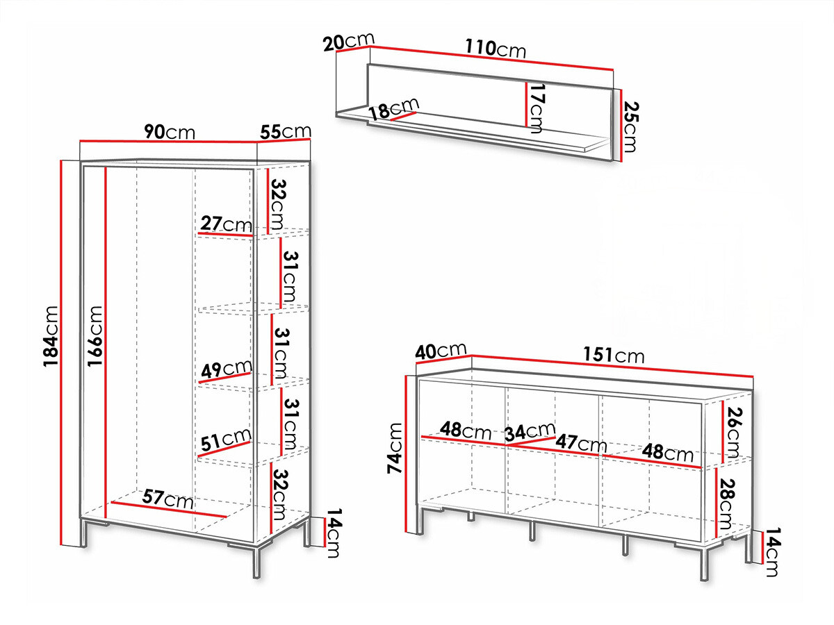 Διαστάσεις ντουλαπιού: