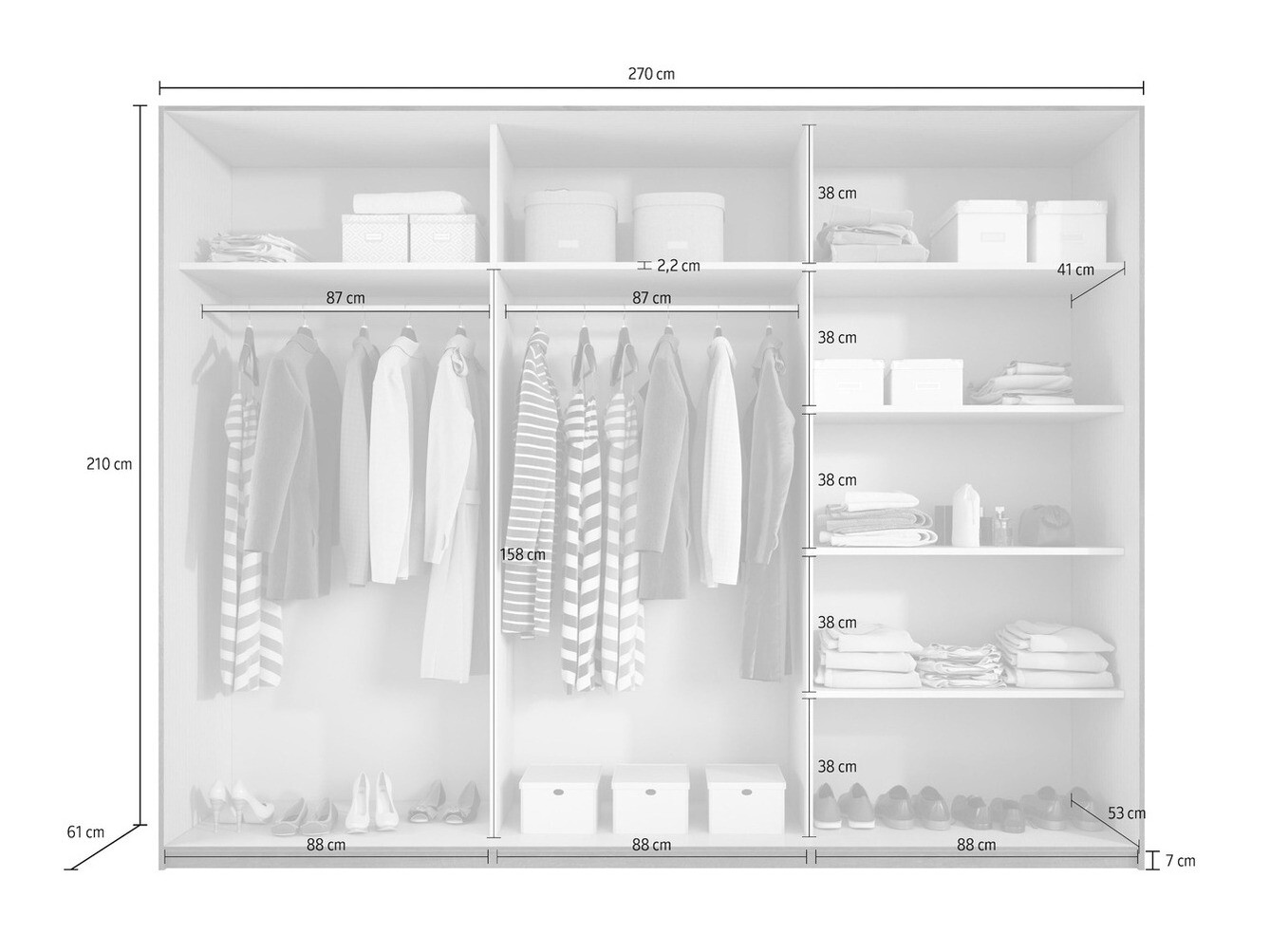 Το προϊόν είναι όπως το περίμενα. Τεράστια ντουλάπα, χωράει πολλά πράγματα. Οι συρόμενες πόρτες μετακινούνται εύκολα.