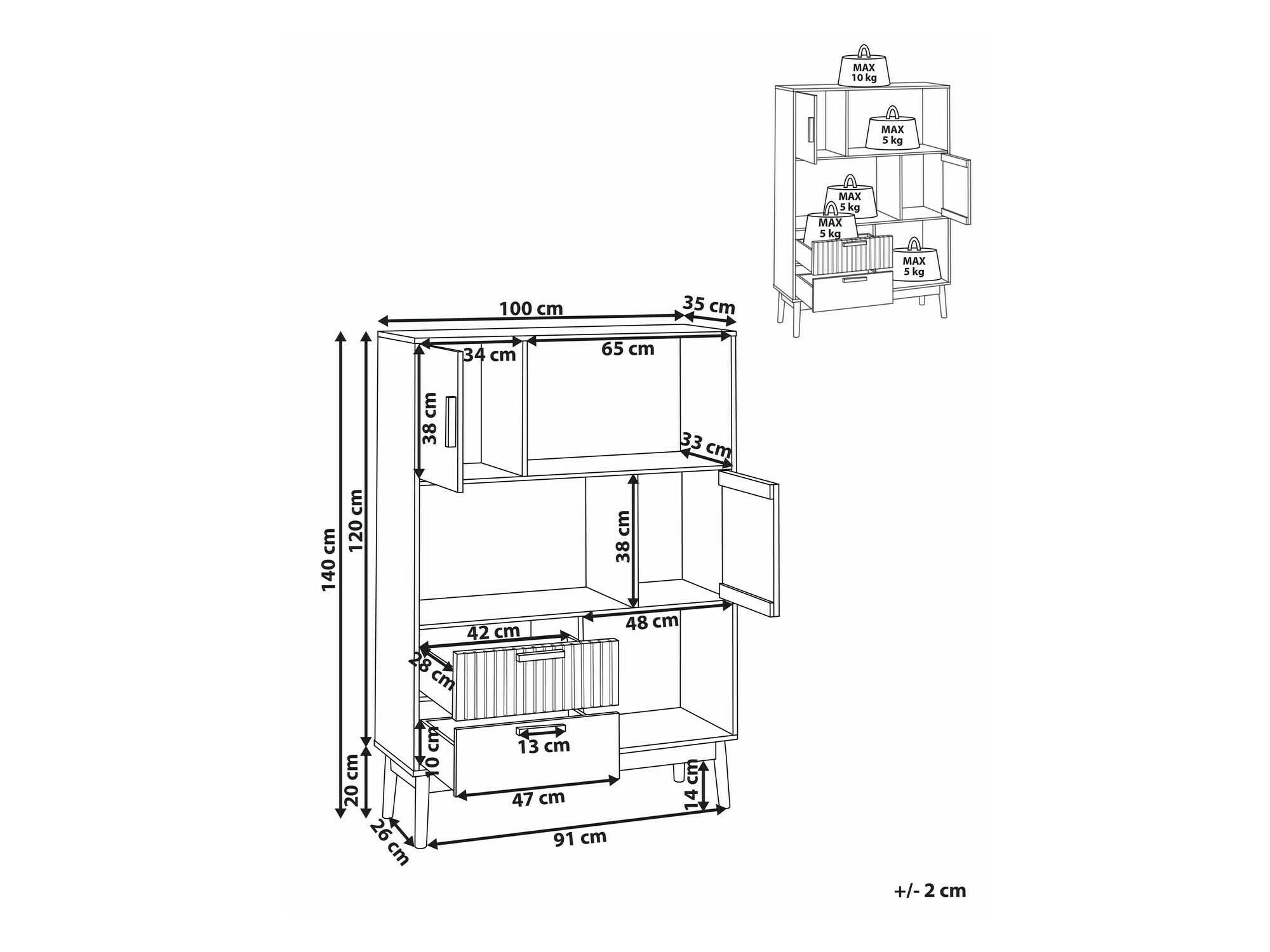 140 x 100 x 35 cm