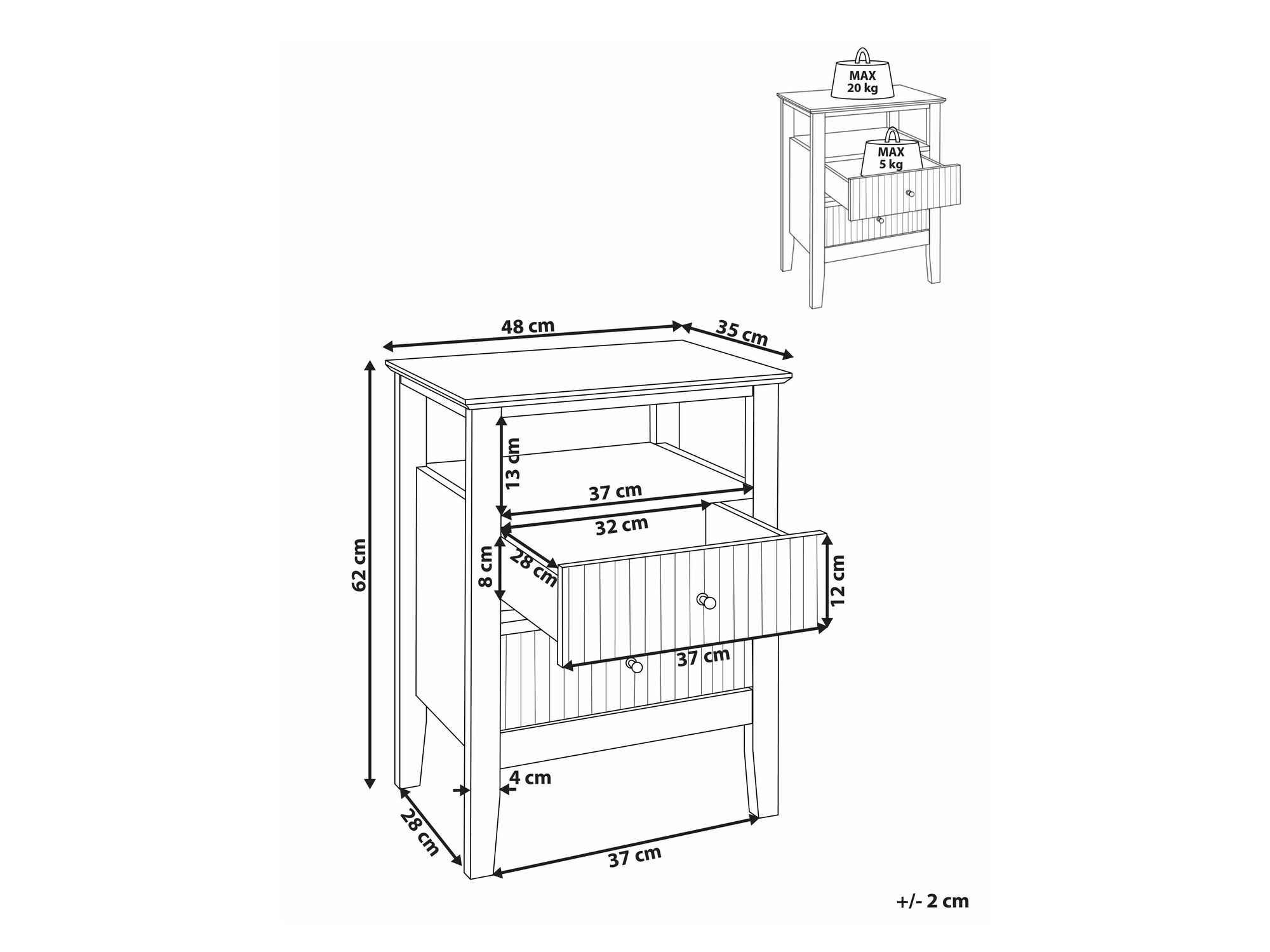 Μέγιστη αντοχή βάρους συρταριού:
