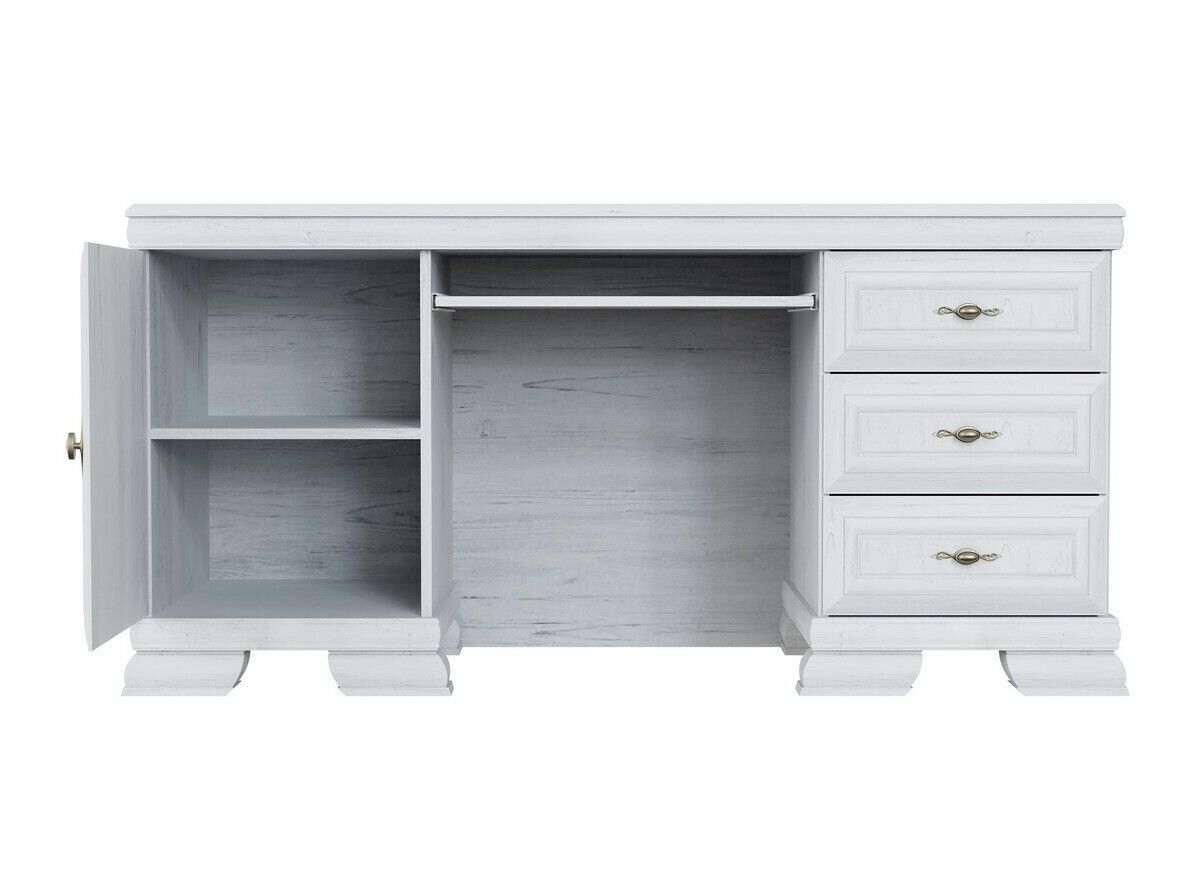 Αυτή η συλλογή κλασικού στυλ απευθύνεται σε όσους εκτιμούν το διαχρονικό σχεδιασμό και την κομψότητα. Τα έπιπλα της συλλογής είναι διακοσμημένα με μεταλλικές λαβές μοναδικού σχεδιασμού, δίνοντας σε κάθε κομμάτι μια πολυτελή εμφάνιση. Ένα από τα πιο σημαντικά χαρακτηριστικά αυτής της συλλογής είναι ηανθεκτική στις γρατζουνιές επιφάνειά της, η οποία εξασφαλίζει την αντοχή των επίπλων στο χρόνο. Ακόμη και μετά από πολλά χρόνια συνεχούς χρήσης, τα έπιπλα αυτά θα διατηρήσουν την άψογη εμφάνισή τους. Αυτή η συλλογή δεν εκπέμπει μόνο κομψότητα, αλλά δίνει και έμφαση στη λειτουργικότητα. Τα ράφια και τα συρτάρια είναι ευρύχωρα, εξασφαλίζοντας ότι θα έχετε αρκετό χώρο για να διατηρείτε τα πράγματά σας οργανωμένα. Ο συνδυασμός κλασικού στυλ και πρακτικότητας εξασφαλίζει ότι αυτή η συλλογή δεν θα διακοσμήσει μόνο το χώρο σας αλλά και θα βελτιώσει την ποιότητα της καθημερινής σας ζωής. Απολαύστε την ομορφιά του κλασικού στυλ και φέρτε τη διαχρονική κομψότητα στο σπίτι σας.