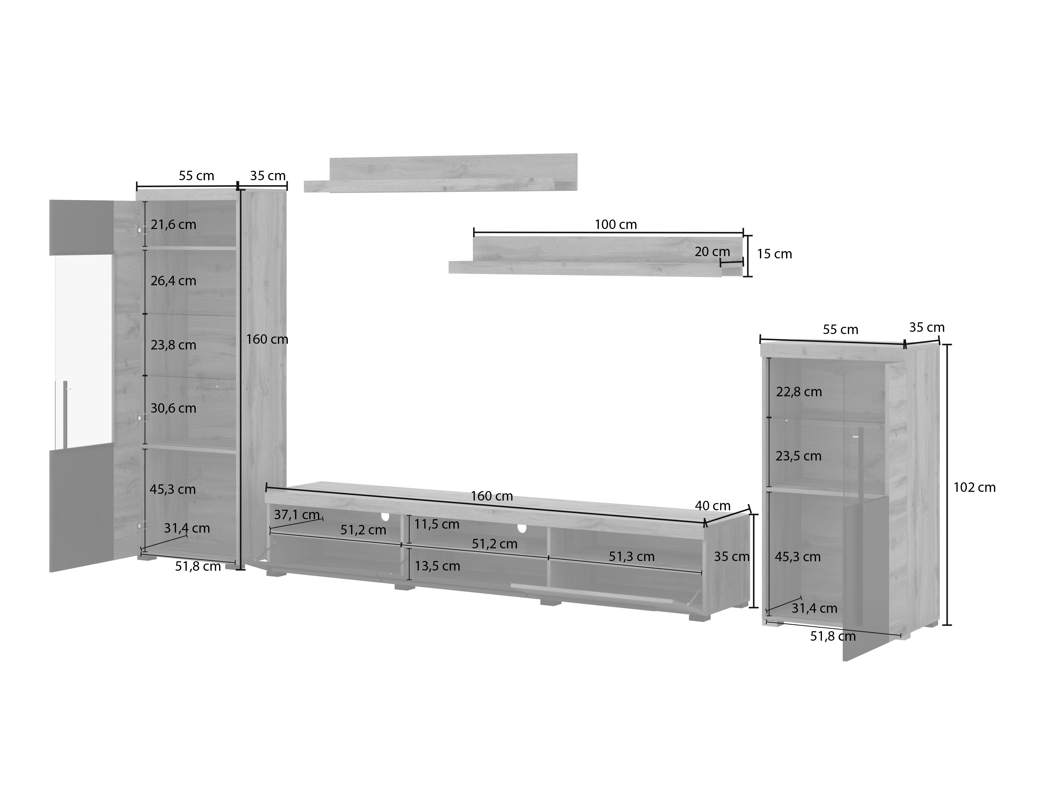 35 x 160 x 40 cm
