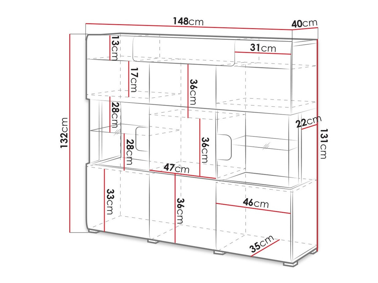 Η συλλογή περιλαμβάνει ντουλάπια διαφόρων μεγεθών, ευρύχωρα κουτιά ή συρτάρια, ένα ράφι και ένα τραπεζάκι καθιστικού. Το γυαλιστερό τελείωμα των επίπλων θα μεγαλώσει οπτικά το δωμάτιο. Οι πόρτες και τα συρτάρια ανοίγουν με ένα μόνο κλικ - αυτό εξασφαλίζεται από τον ενσωματωμένο μηχανισμό «Push to open».