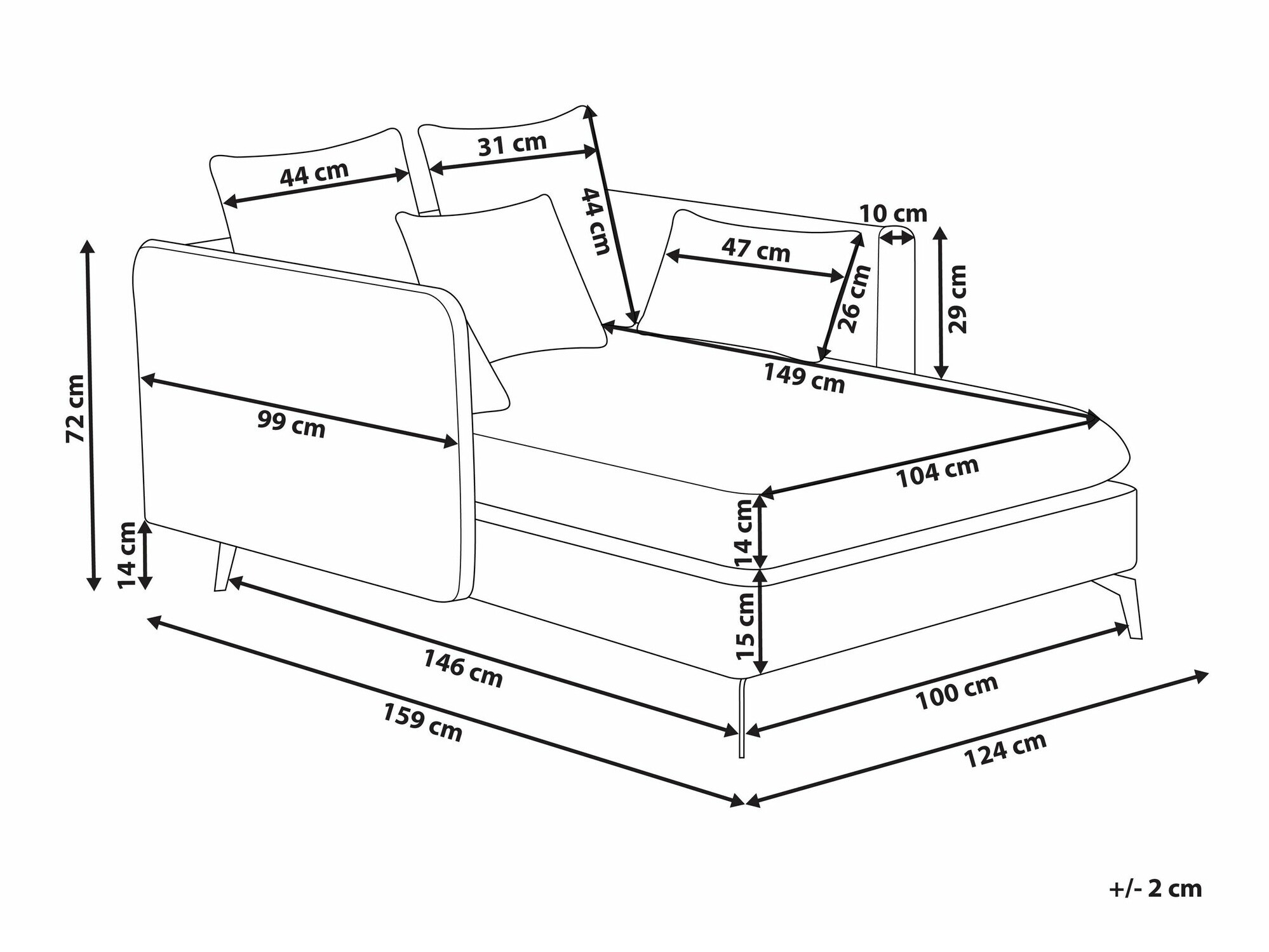 Βάθος μαξιλαριού καθίσματος: