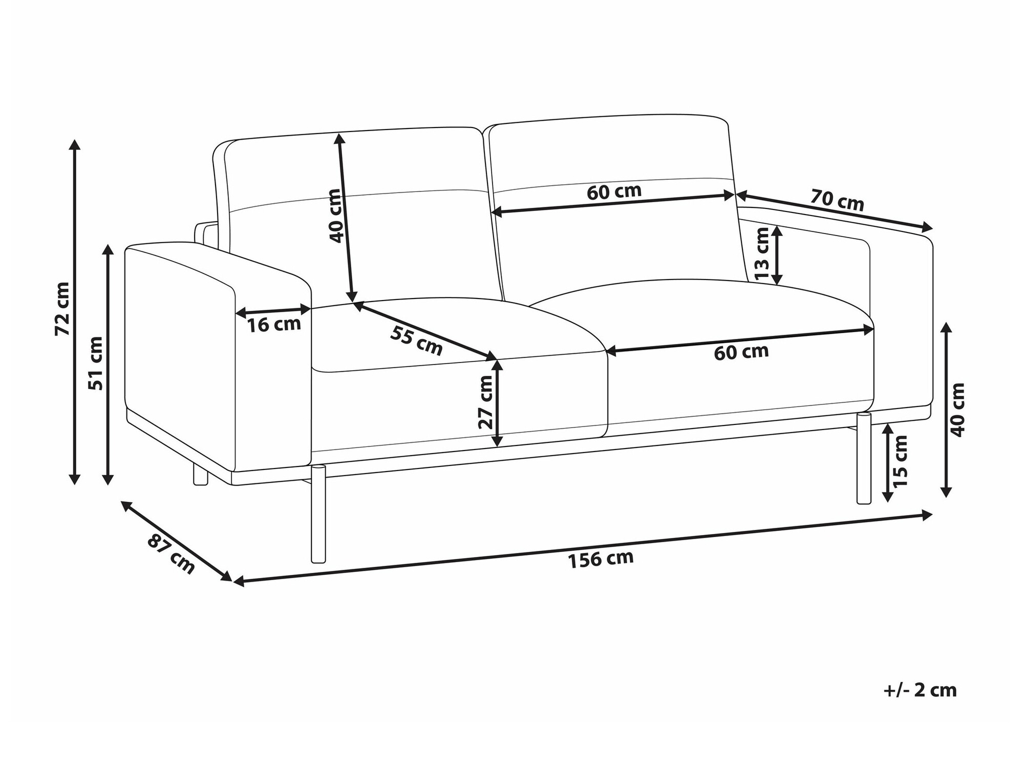 Βάθος μαξιλαριού καθίσματος: