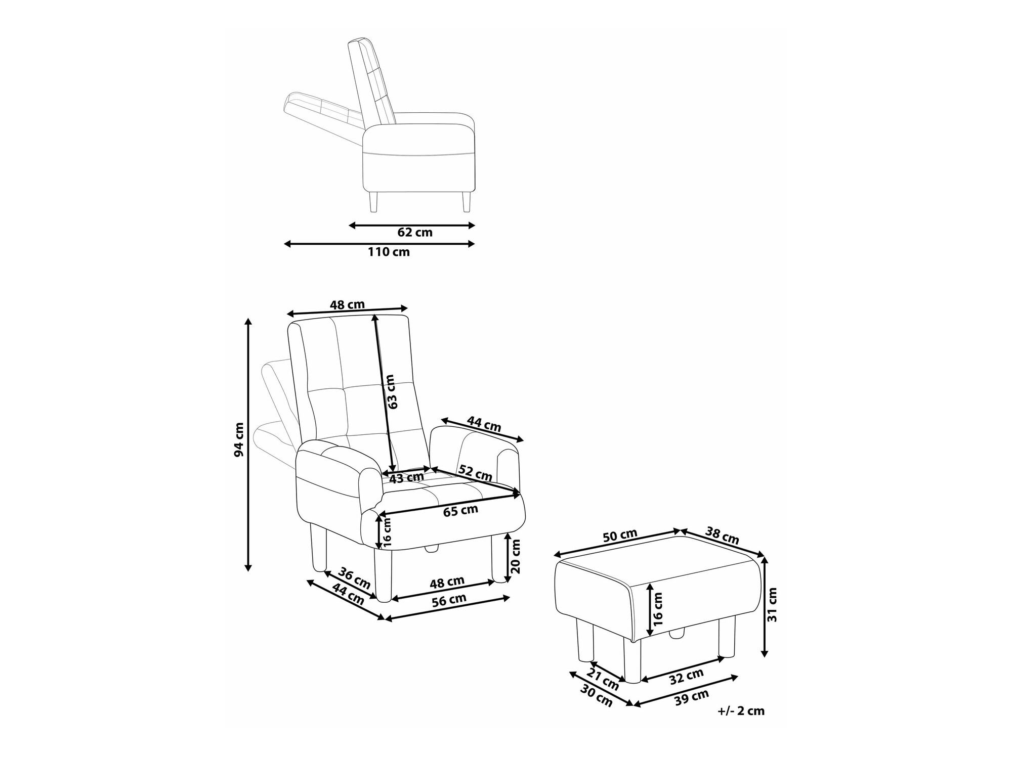 Βάθος μαξιλαριού καθίσματος: