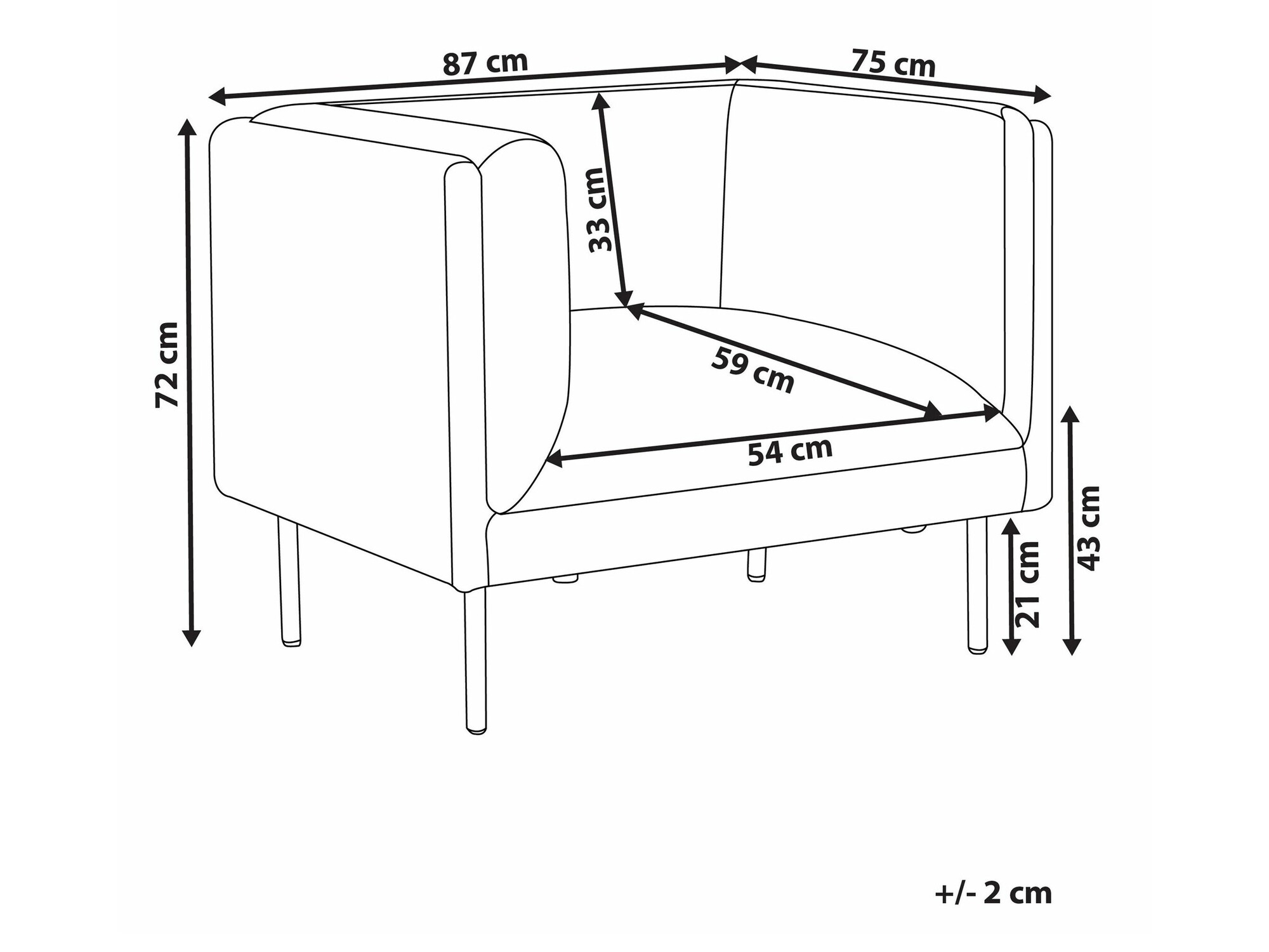 Βάθος μαξιλαριού καθίσματος: