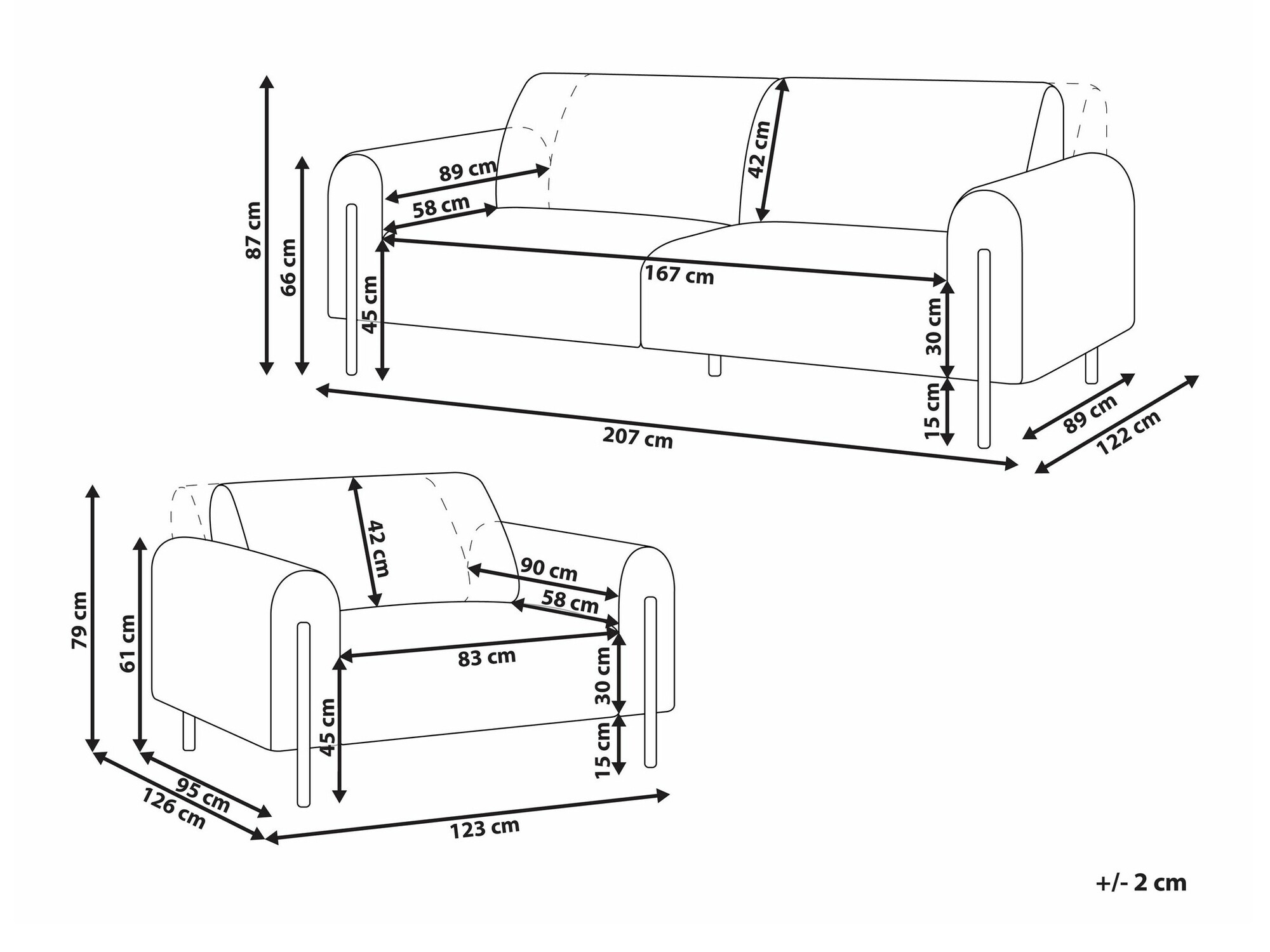 87 x 207 x 89 / 122 cm
