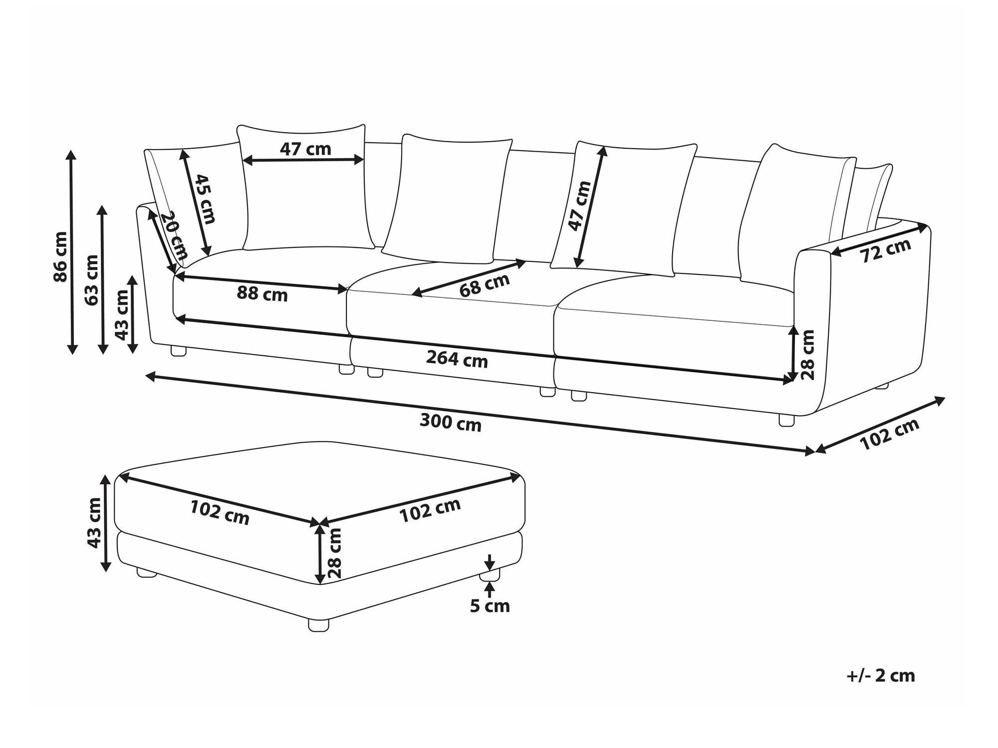 86 x 300 x 102 cm